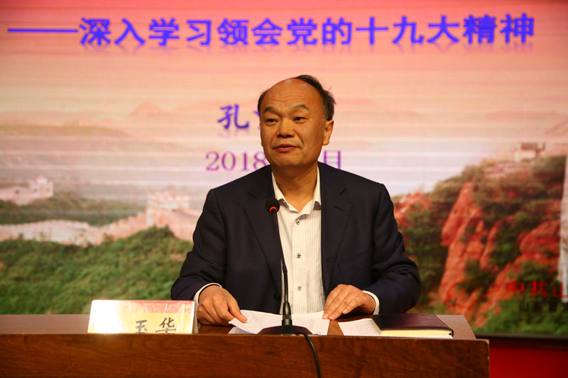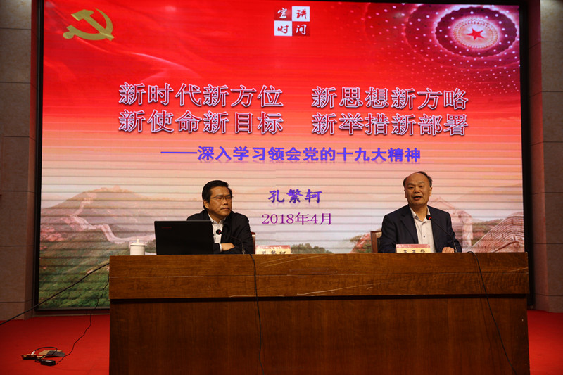 4月16日上午,学校党委中心组(扩大)学习——党的十九大精神专题报告会在章丘校区学术报告厅举行。山东省委党的十九大精神宣讲团成员、省委宣传部部务会成员、省委讲师团团长孔繁轲作了关于党的十九大精神的专题报告。报告会由党委书记王玉华主持,校领导、全校中层干部及各学院党支部书记现场聆听了此次专题报告会。