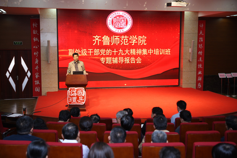 4月20日上午,国是讲坛第二十二讲在我校举办副处级干部党的十九大集中培训班上开讲,在学校党委副书记、校长林松柏作了题为《学习贯彻党的十九大精神要在学懂弄通做实上下功夫》的专题报告。报告会在章丘校区图书馆学术报告厅举行,全校中层干部、二级学院党支部书记到场聆听。报告会由党委委员、副校长张福建主持。