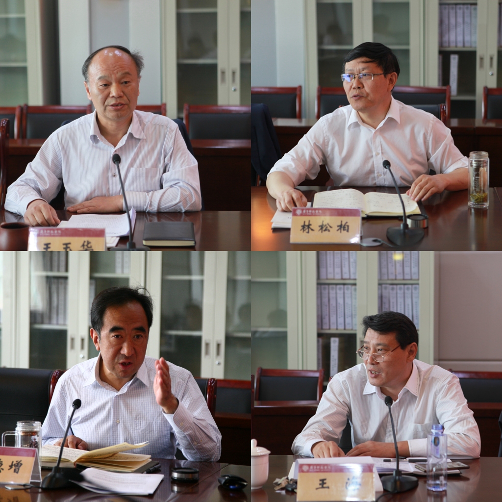 王玉华在发言中围绕全面加强新时代学校党建工作、全面落实高等学校的核心任务、统筹推进学校综合改革工作、努力体现高等学校的职责使命四个方面作了系统阐述。林松柏在发言中针对发展目标、发展观念、发展举措三个方面的问题,对人事与分配制度、人员聘用、绩效考核、人才引进、教学改革等综合改革中的重点工作作了解析。刘德增在发言中重点围绕学科、科研工作,就学科建设、科研团队培育、科研平台搭建等作了论述。王海在发言中重点对后勤管理、国有资产管理、基建、安全保卫等工作进行了梳理,提出了整改意见。