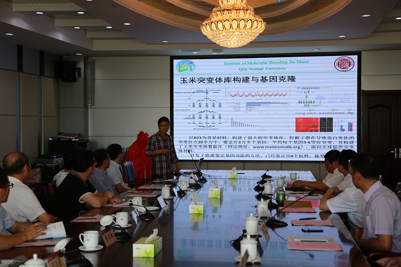 我校玉米分子育种研究院院长路小铎教授就院士工作站的工作进行了汇报。范云六院士工作站将主要开展玉米产量、品质及抗性相关的理论研究,开展分子设计育种等现代育种前沿技术研究,综合利用分子育种与常规育种技术手段,构建经济、高效、快速的分子育种体系,加快高产、优质、高效、抗逆玉米新品种选育过程,培育适合山东乃至全国的玉米新品种,为现代玉米育种水平的提高、突破和创新开辟一条新的途径。