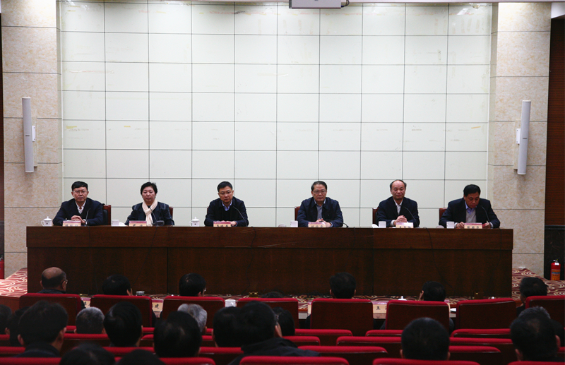 12月16日上午,在章丘校区图书馆报告厅,学校召开中层以上干部和正高职称人员会议,宣布省委关于学校领导班子调整的决定。省委组织部副部长马晓磊,省委高校工委副巡视员刘欣堂,省委高校工委干部处处长张洪英,省委组织部干部四处副处长陈玉平出席会议。党委副书记张殿臣主持会议。