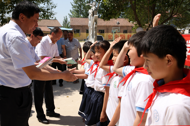 在单县县委组织部部长邓林军、莱河镇党委书记董留柱等当地领导的陪同下,校领导到“第一书记”帮包的袁堂村等贫困村看望驻村小学师生、贫困户,向袁堂村小学、帅楼幼儿园、许河村小学捐赠了959册图书、125件儿童玩具和20付羽毛球拍,并为30户贫困群众送去了食用油、米面等生活用品。