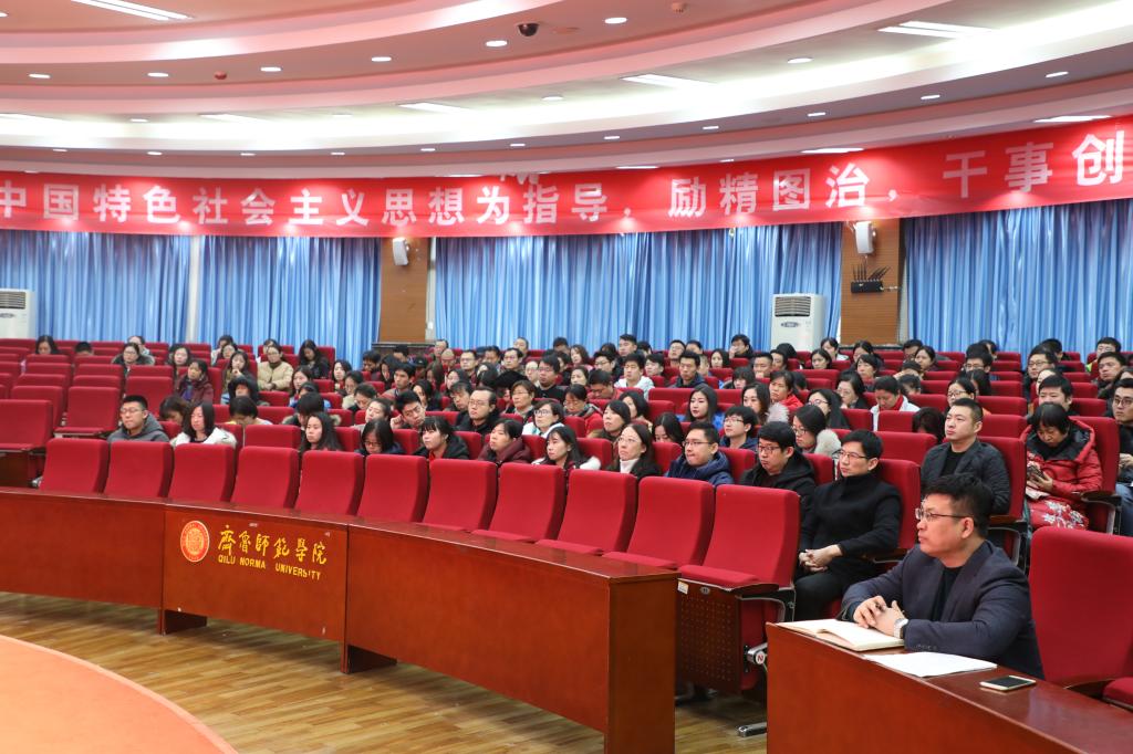 12月21日上午,在章丘校区图书馆学术报告厅,学校组织科级干部任职集体谈话与廉政教育会议。党委书记王玉华主持会议并作重要讲话,纪委书记李启波出席会议并作廉政教育报告。全体科级干部参加了会议。