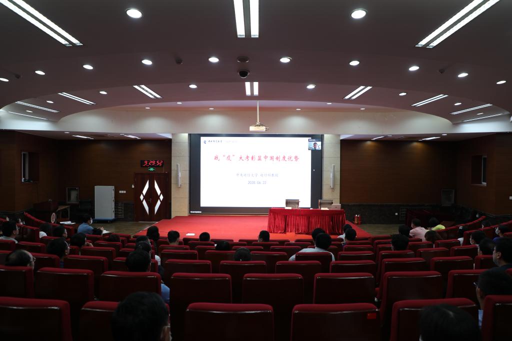 开班式后,中央财经大学马克思主义学院教授、博士生导师赵付科应邀在云端作了题为《战“疫”大考彰显中国制度优势》的辅导报告。赵付科教授从党的十九届四中全会为何聚焦国家制度和治理体系问题、中国特色社会主义制度显著优势有何内在逻辑、战疫大考如何彰显制度优势三个方面进行了细致解读。