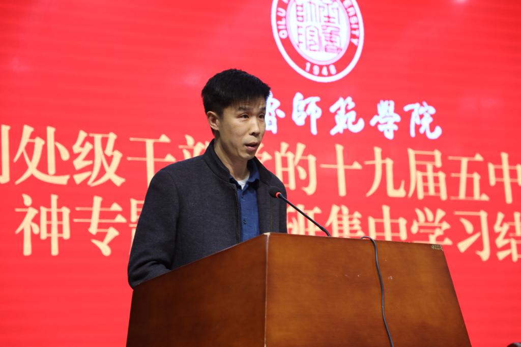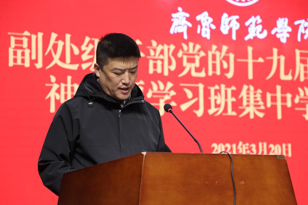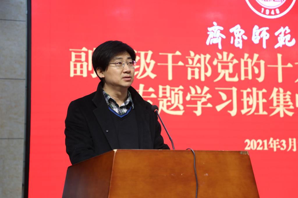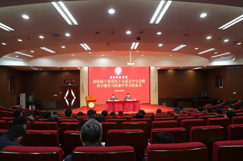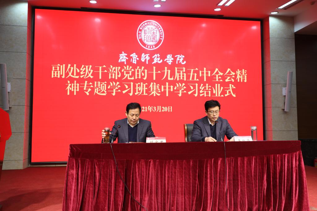 3月20日下午,在章丘校区学术报告厅举行了我校副处级干部党的十九届五中全会精神集中学习结业式。全体学员参加了结业式,党委副书记刘宝君出席并讲话,党委委员、组织部长李伯伟主持。