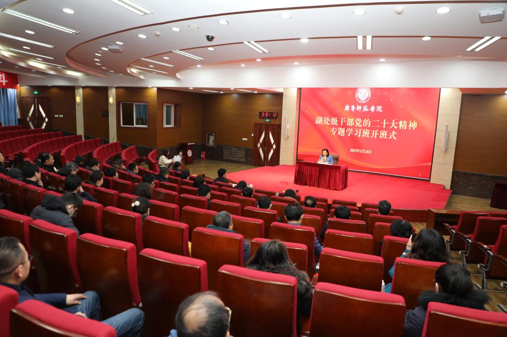 党委副书记赵敏主持开班式并作动员讲话,提出三点要求:一是坚持思想领先,大力弘扬马克思主义学风。要充分认识学习党的二十大精神的必要性和参加此次学习班的重要意义,让党的二十大精神入脑入心、走深走实。二是坚持实干当先,践行“严真细实快”工作作风。坚持把高站位和实干事结合起来,切实将学习成效转化为推动学校事业高质量发展的具体行动。三是坚持奋勇争先,切实发扬担当和斗争精神。牢固树立全校“一盘棋”思想和全面深化改革思维,着力增强改革攻坚能力,主动对标学校党委部署安排,努力把学习成效转化为解决实际问题的能力本领。